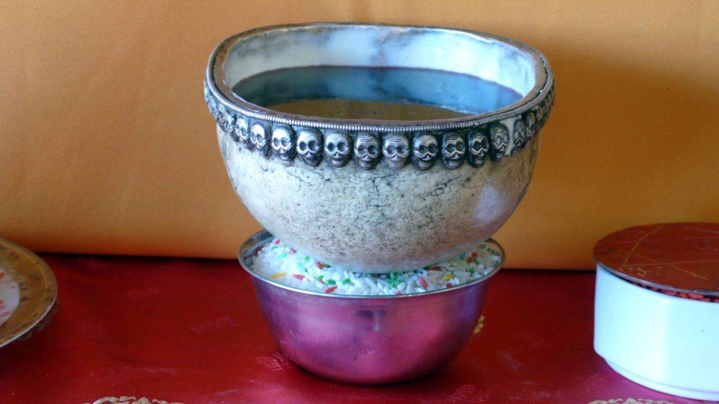 Modlitwa buddyjska w tradycyjnym wnętrzu, odświętna atmosfera, buddyzm w Polsce.